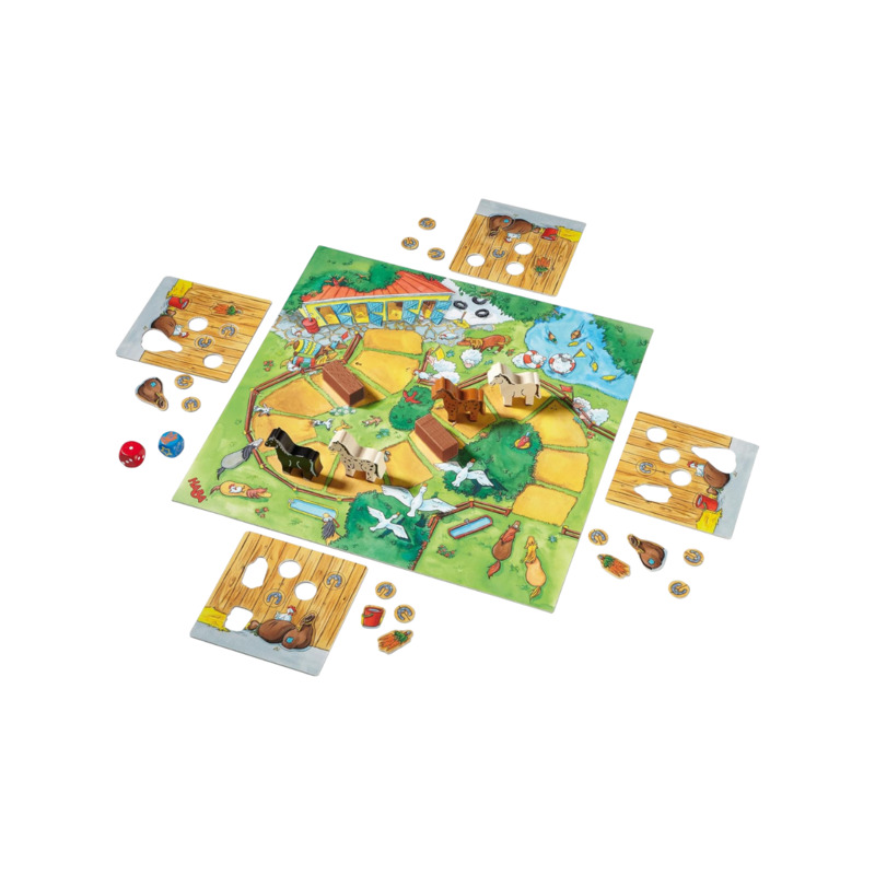 ¡Súbete a los caballos y compite en emocionantes carreras! En ¡A Galopar!, los jugadores avanzan sus caballos por el circuito utilizando cartas de colores, tratando de ser los primeros en cruzar la meta. Estrategia, rapidez y diversión se combinan en cada turno.