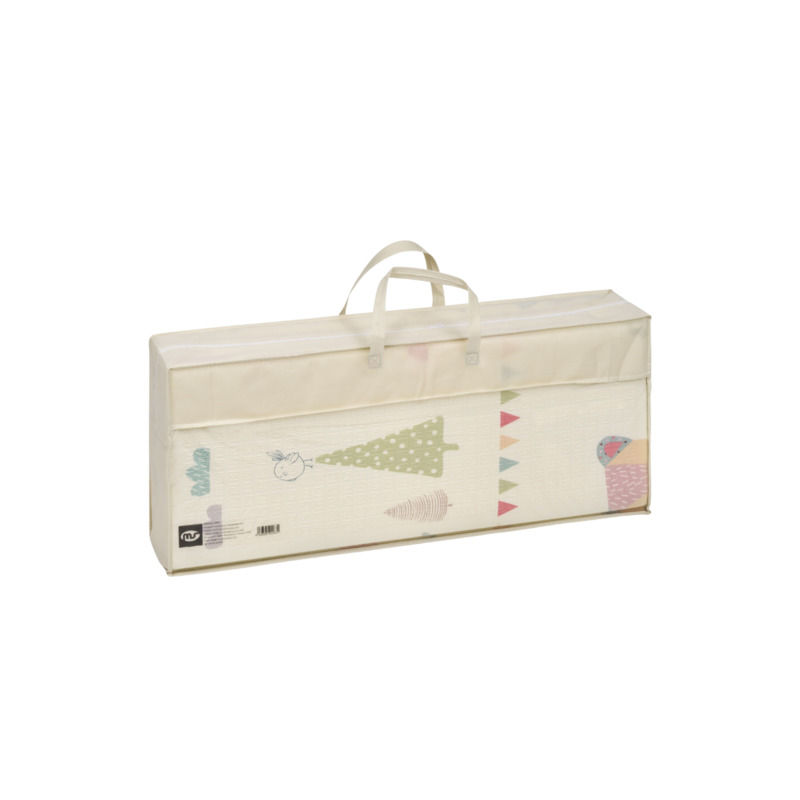 Gracias a su formato plegable y ligero, la alfombra Fancy se instala y guarda fácilmente, siendo perfecta para el hogar o para llevar de viaje. Ideal para el gateo, el juego libre y la estimulación sensorial de los más pequeños.