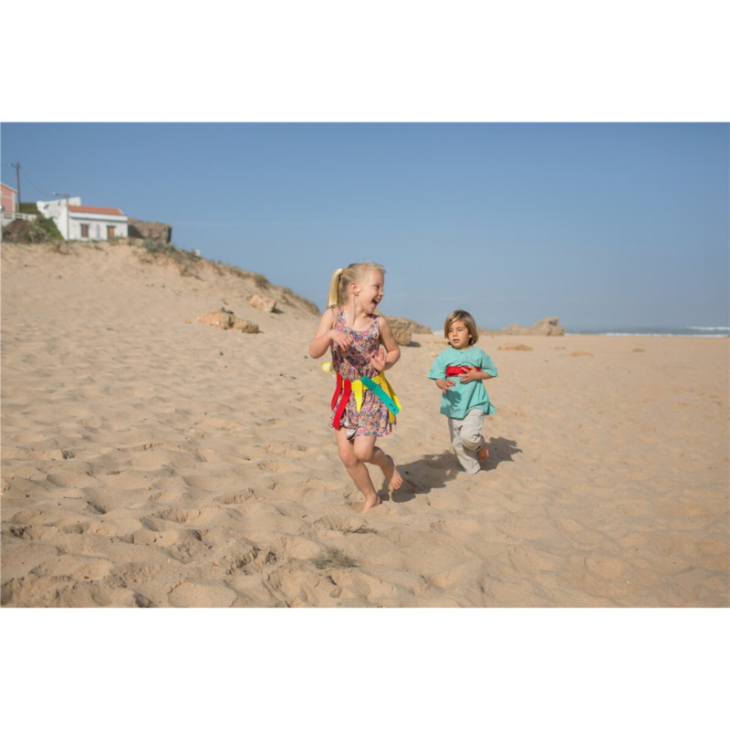 Original y divertido juego de movimiento pensado para niños a partir de 3 años, perfecto para jugar en grupo mientras se fomenta la actividad física y la diversión. Cada jugador comienza la partida con cuatro coloridas colas y deberá intentar atrapar las de los demás para añadirlas a su cinturón de velcro y conseguir el mayor número de puntos. Una propuesta dinámica y entretenida que ayuda a desarrollar la agilidad, la coordinación y la rapidez de reacción, ideal para compartir con amigos o en familia. Está fabricado en fieltro y velcro, con un diseño cómodo y adaptable para facilitar el juego.