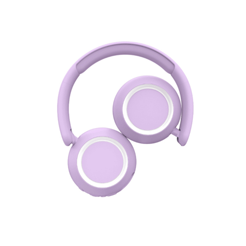 Auriculares Bluetooth infantiles Lalarma de color violeta, con diseño llamativo y luces RGB integradas para una experiencia auditiva envolvente y divertida. Las luces cambian de color suavemente al ritmo de la música, haciendo que cada escucha sea más especial.