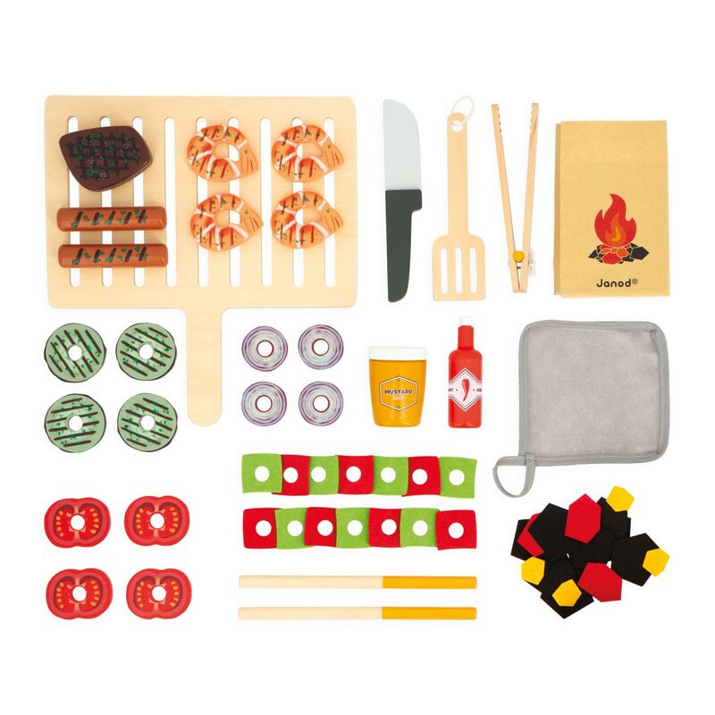 Esta barbacoa incluye todo lo necesario para cocinar face=SourceSansPro-Bold size=4 color=’#54504C’>deliciosas parrilladasface=SourceSansPro-Regular size=4 color=’#54504C’> en las face=SourceSansPro-Bold size=4 color=’#54504C’>noches de veranoface=SourceSansPro-Regular size=4 color=’#54504C’>. Con ella, los niños podrán imitar las face=SourceSansPro-Bold size=4 color=’#54504C’>situaciones que ven en casaface=SourceSansPro-Regular size=4 color=’#54504C’>, preparando ricas face=SourceSansPro-Bold size=4 color=’#54504C’>salchichas y brochetas a la brasaface=SourceSansPro-Regular size=4 color=’#54504C’> para toda la familia.