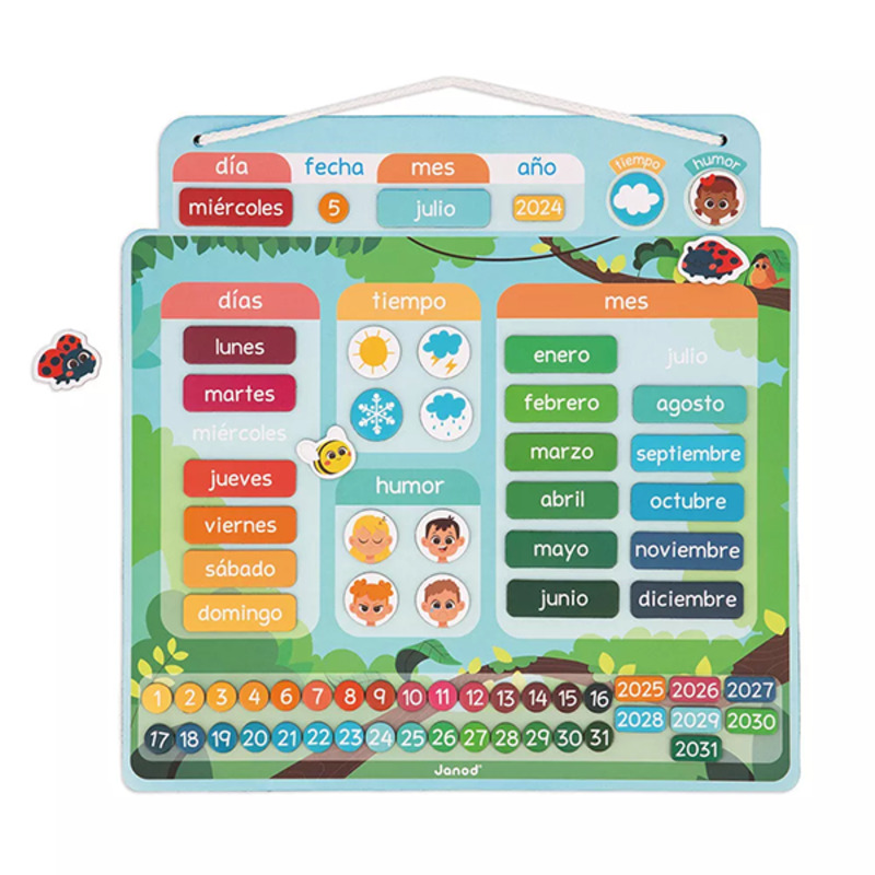Un calendario educativo con 68 imanes que permite a los niños marcar el clima, las estaciones y el estado de ánimo. Ideal para enseñarles los conceptos de tiempo de manera interactiva y divertida.