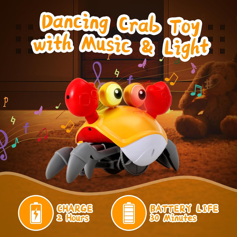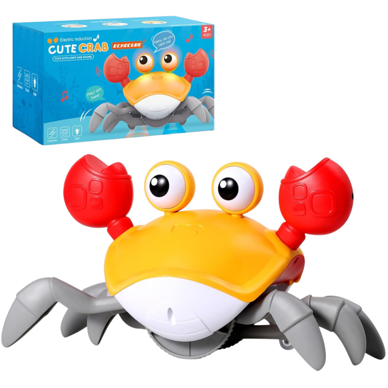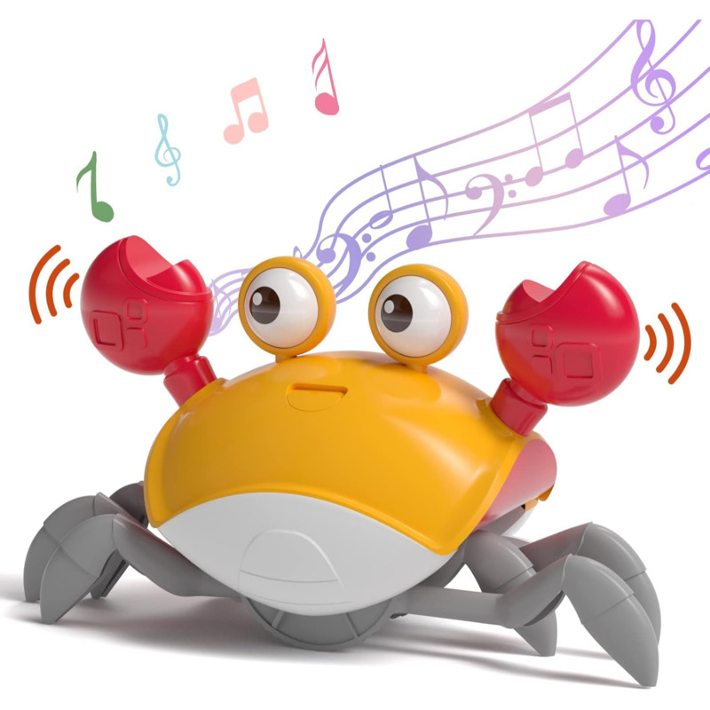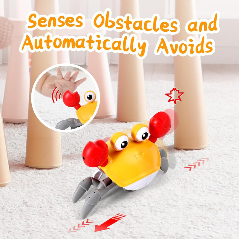 Este divertido juguete cangrejo se mueve automáticamente al detectar obstáculos, huyendo en dirección contraria, lo que anima a los niños a perseguirlo y desarrollar la coordinación mano-ojo y habilidades motoras.