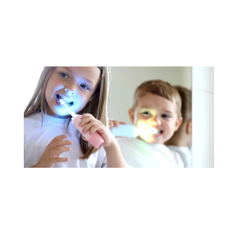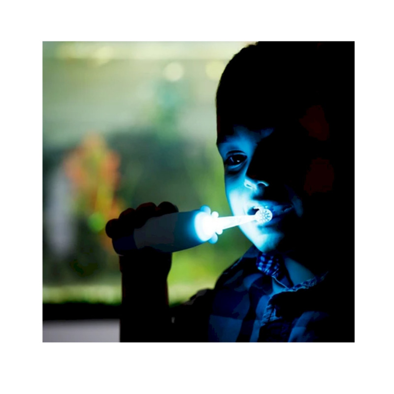 Fabricado con cerdas DuPont de alta calidad y punta redondeada, protege el esmalte y las encías. Su superficie de silicona tridimensional ofrece un agarre cómodo y antideslizante. El cabezal se ilumina con 7 colores LED que motivan a los niños durante el cepillado.