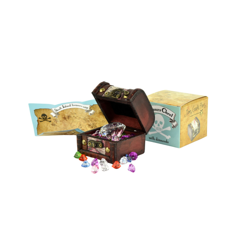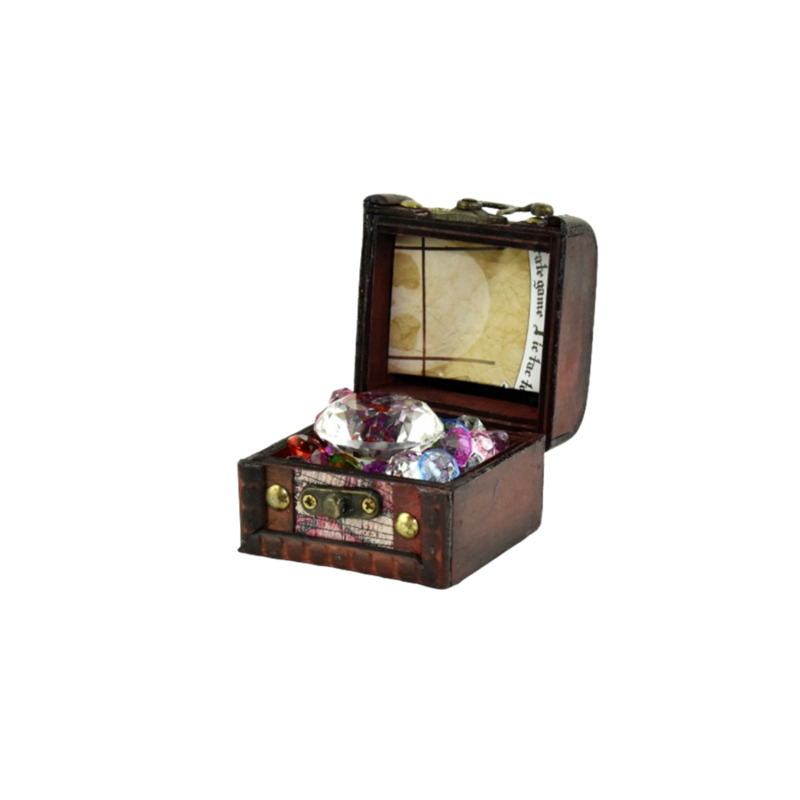Este cofre del tesoro está fabricado de madera y viene lleno de diamantes de todos los colores del arcoíris, un mapa del tesoro y una bolsa de terciopelo incluidas. El cofre tiene una cerradura inteligente que evita que los tesoros se caigan.