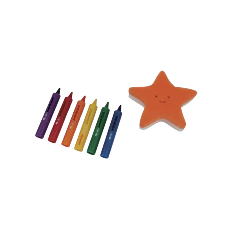 El kit incluye 6 ceras de colores con aplicador y una esponja con forma de estrella, perfecta para borrar los dibujos fácilmente y empezar de nuevo. Ideal para fomentar la creatividad, la motricidad fina y la imaginación, convirtiendo la rutina del baño en un momento de juego y aprendizaje.