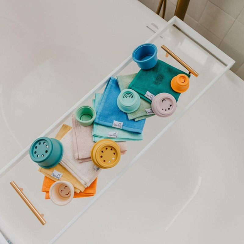 Este set de cubos apilables está pensado para que los peques aprendan mientras se divierten. Fabricados con silicona de grado alimenticio, son súper seguros para ellos: libres de BPA, ftalatos y PVC.