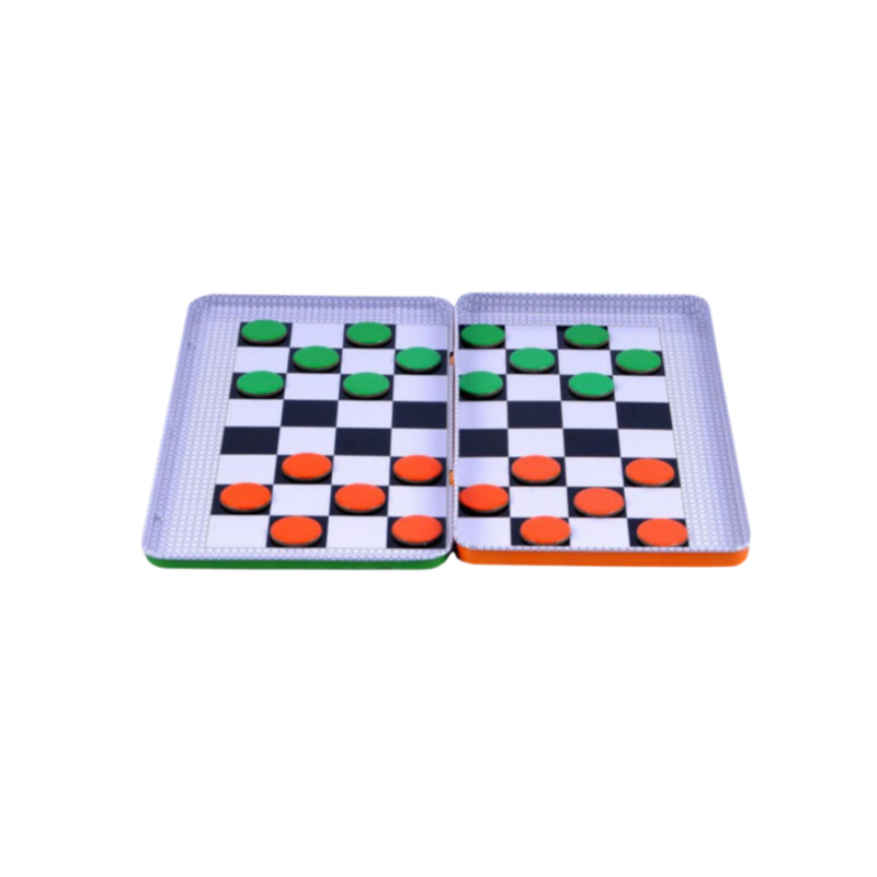 TO GO – Damas magnético, la versión de viaje del clásico juego de damas, ideal para jugar en cualquier lugar, incluso durante desplazamientos. Cada jugador dispone de 12 fichas que se colocan en las casillas de los extremos opuestos del tablero. Las fichas avanzan en diagonal por turnos y, al alcanzar la fila contraria, se coronan para obtener movimiento de dama. El objetivo es mantener fichas activas en el tablero mientras se capturan las piezas del adversario mediante saltos diagonales.