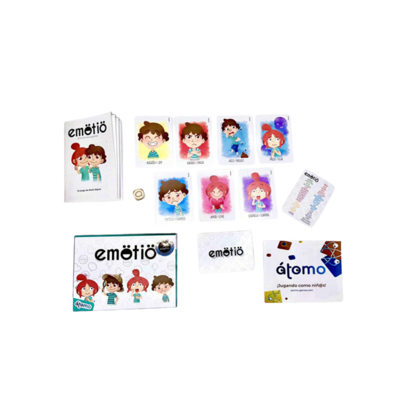 EMOTIO es un juego educativo diseñado para trabajar las emociones de los más pequeños de una forma divertida y participativa. A través del juego, se potencia la Inteligencia Emocional fomentando la aceptación, la comunicación y la expresión emocional. EMOTIO ayuda a desarrollar la autoestima, la empatía y unas relaciones sociales saludables desde edades tempranas. Está recomendado para niños y niñas a partir de 4 años y permite partidas de aproximadamente 20 minutos con dos o más jugadores.