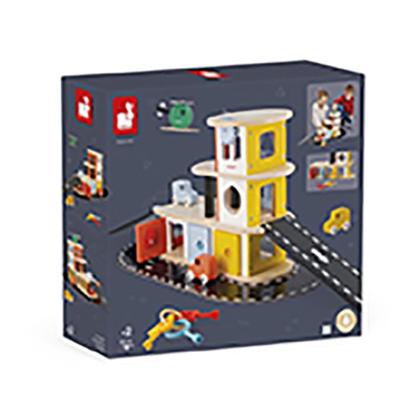 Hecho en madera FSC™, este garaje desarrolla su motricidad y su creatividad mientras juega.