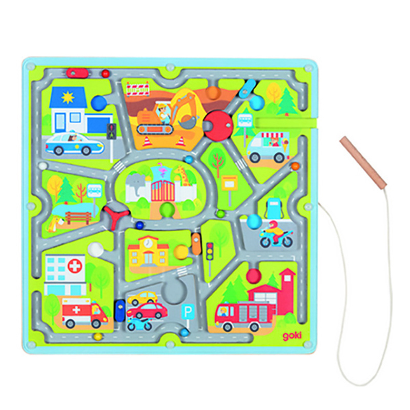 Con el Laberinto Magnético de Tráfico , los/as peques pueden guiar las bolas de colores a través de avenidas y calles utilizando un lápiz magnético. Este juego estimula la coordinación ojo-mano, la concentración y la motricidad fina.