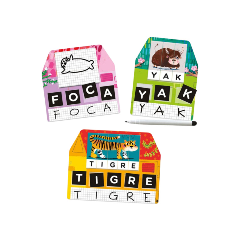 Este juego educativo, inspirado en el método Montessori, está diseñado para que los niños aprendan a leer y escribir de manera progresiva y divertida. A través de tres actividades diferentes, los pequeños podrán ampliar su vocabulario y desarrollar habilidades fundamentales para la escritura.