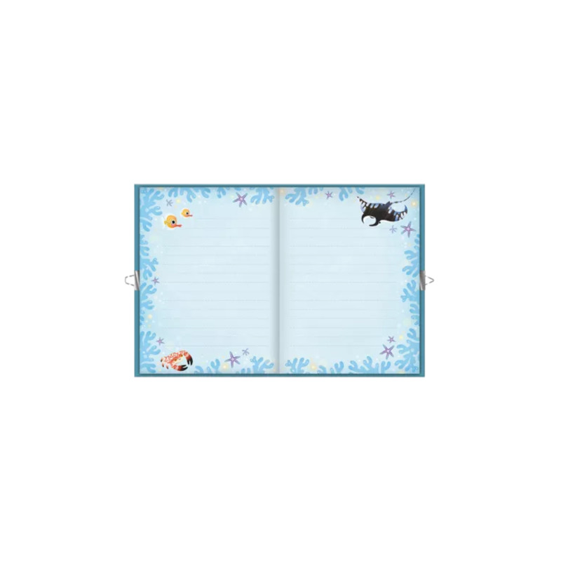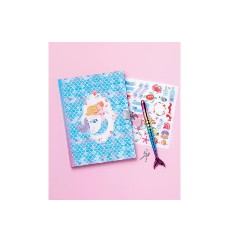 El cuaderno secreto de sirena Magic Ocean permite a los niños expresar su creatividad y guardar sus pensamientos de forma divertida. Incluye un cuaderno de 96 páginas, bolígrafo con forma de cola de sirena y tinta violeta, hoja de transferencia y candado con 2 llaves para mantener los secretos bien protegidos. Con ilustraciones marinas y reflejos iridiscentes, es perfecto para niños a partir de 7 años.