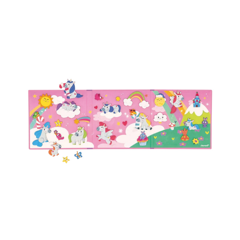 Este divertido juego magnético es ideal para que los peques creen sus propias aventuras con 30 imanes en una colorida fiesta. Con un tablero ilustrado, los niños pueden inventar historias, moviendo y colocando los imanes según su imaginación. Este juego no solo ofrece horas de diversión, sino que también ayuda a desarrollar la creatividad, la imaginación y la motricidad fina.