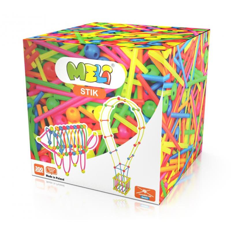 Aunque las piezas son muy simples (palos flexibles que se pueden unir usando canicas con agujeros), los niños pueden pasar largas horas construyendo estructuras complejas. Al mismo tiempo, los niños pueden mejorar su coordinación ojo-mano, planificación espacial y habilidades manuales. Apoye el desarrollo saludable de su hijo con el set Meli Stick 300 que contiene 200 palos y 100 canicas para construir todo lo que puedan soñar. Meli Stik también es totalmente compatible con Meli Basic. Cuando se te acaben las ideas, siempre puedes seguir las instrucciones del folleto adjunto.
