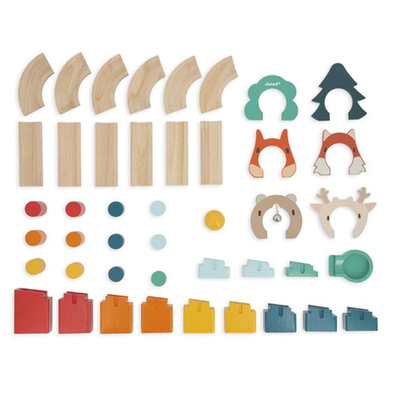 Con Mi Primer Circuito, los peques pueden montar su propio recorrido de bolas, colocando pilares, raíles y puertas para crear diferentes circuitos. Este set de 44 piezas de madera incluye 13 conectores, 12 pilares, 12 raíles, 6 puertas y una bola. Es ideal para desarrollar la motricidad fina, la creatividad y la imaginación, permitiendo construir infinitos circuitos. Fabricado con madera certificada FSC y pintado con pinturas al agua, es un juguete seguro y sostenible que garantiza horas de entretenimiento educativo.