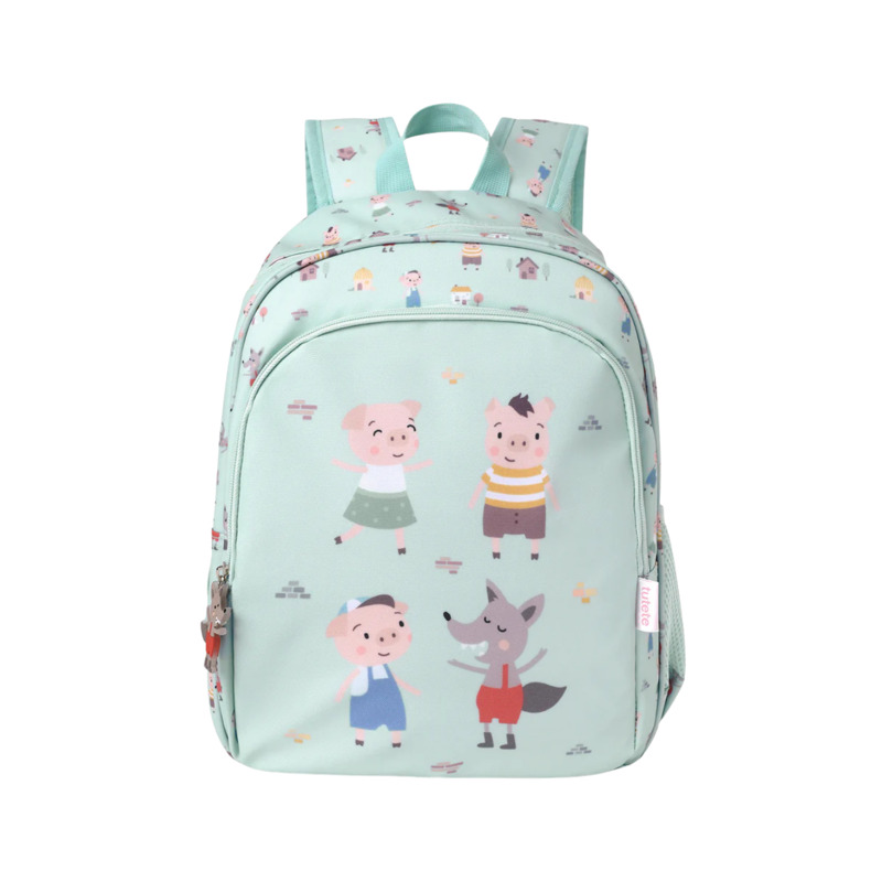 Mochila escolar mediana personalizable de la colección Vuelta al Cole The Three Little Pigs de Tutete, pensada para niños de 5 a 10 años. Está fabricada en 100% RPET, un material resistente e impermeable elaborado a partir de plástico reciclado, que ofrece durabilidad, comodidad y un enfoque sostenible para el uso diario escolar.