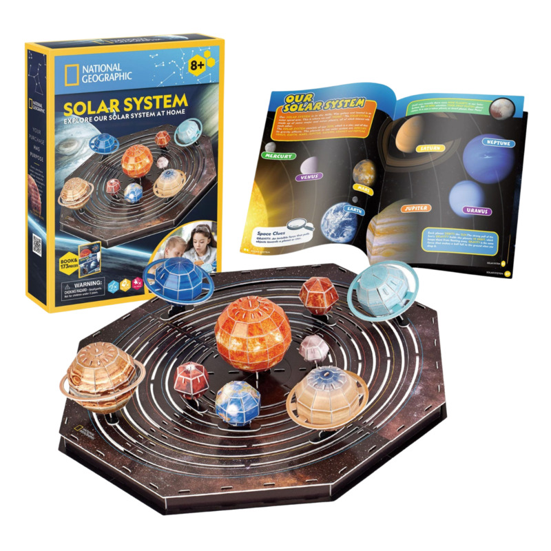 Embárcate en una aventura espacial con el sistema solar 3D de national geographic, un juguete educativo que inspira a niñas y niños a explorar el cosmos desde casa. Este innovador puzzle maqueta permite poner en movimiento los planetas y aprender sobre su posición, orden, tamaño y forma de manera práctica y divertida.