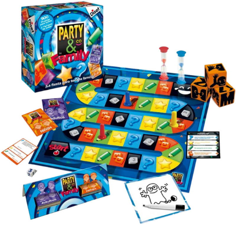 Party & Co Family de Diset es un juego de mesa diseñado para divertir a toda la familia. Recomendado para niños a partir de 8 años y adultos, combina pruebas de mímica, dibujo, preguntas y palabras prohibidas que fomentan la creatividad, el trabajo en equipo y la diversión.