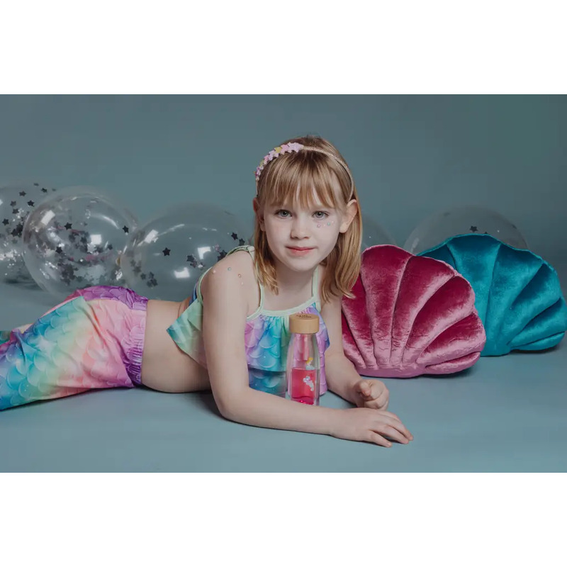 Descubre la Move Bottle Sirena, una botella sensorial size=3 color=\»#102541\»>única que invita a soñar y relajarse. Con su efecto lupa y líquido flotante, esconde un fascinante universo marino lleno de burbujas, moluscos, lentejuelas y la enigmática sirena que nada en su interior. Solo tienes que agitarla y mirar dentro para dejarte sorprender por un océano de calma y creatividad.