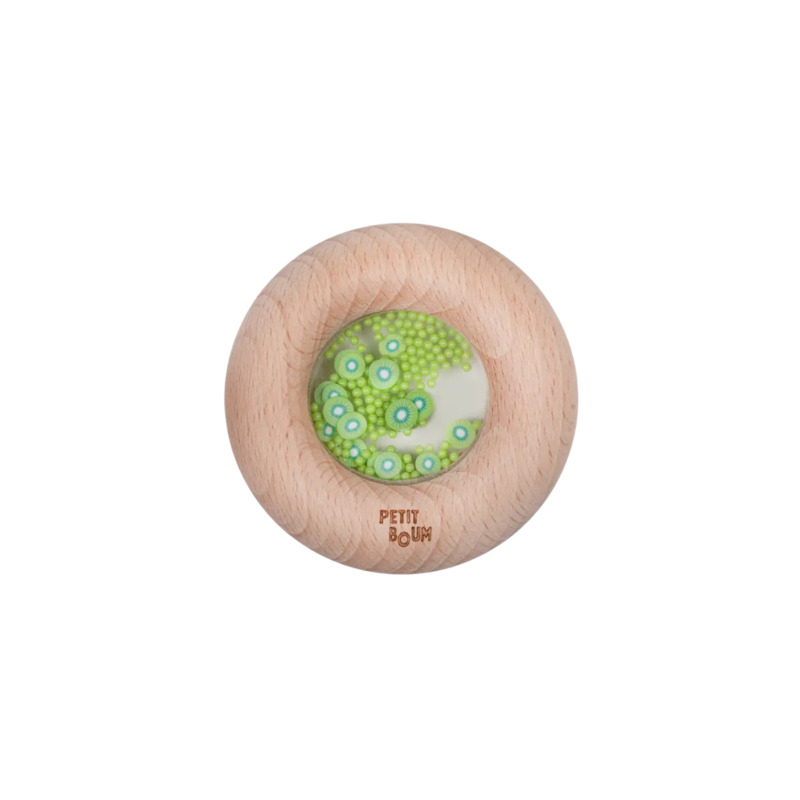 Los Donuts Sensoriales de Petit Boum son un juguete ideal para estimular los sentidos y acompañar el desarrollo temprano del bebé. Con forma de donut, este original sonajero de madera incluye en su interior pequeñas figuras de frutas y verduras que llaman la atención por su color y sonido, invitando a la exploración sensorial y al juego libre.