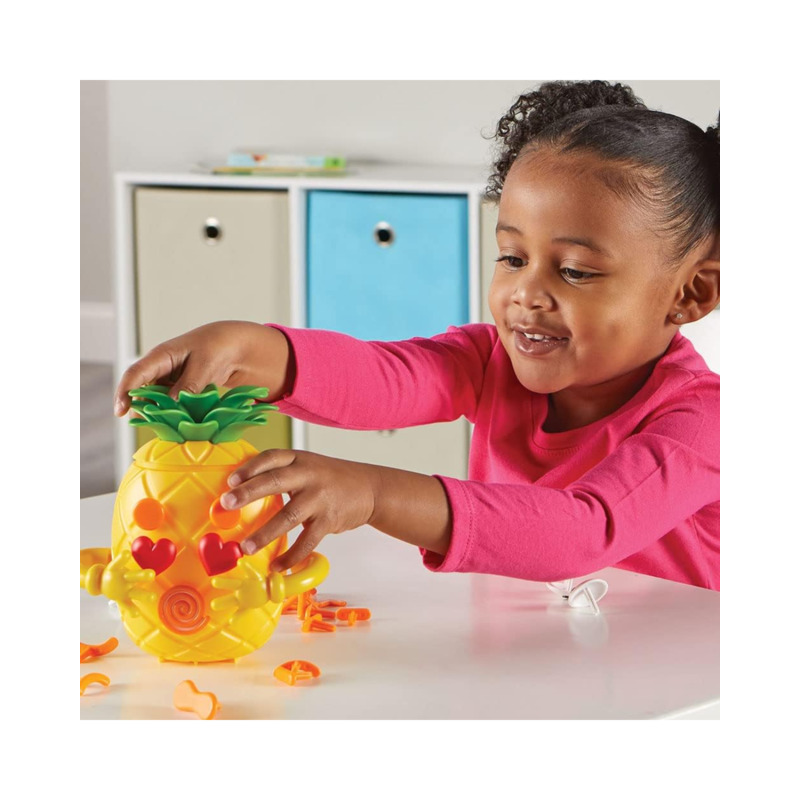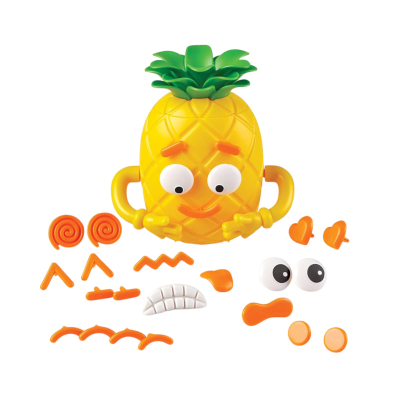 Set educativo Piña de Expresiones diseñado para desarrollar aptitudes sociales y emocionales en niños de preescolar. Con 26 componentes, los niños pueden crear una gran variedad de expresiones, desde sonrisas hasta ceños fruncidos, explorando emociones de manera divertida y práctica.