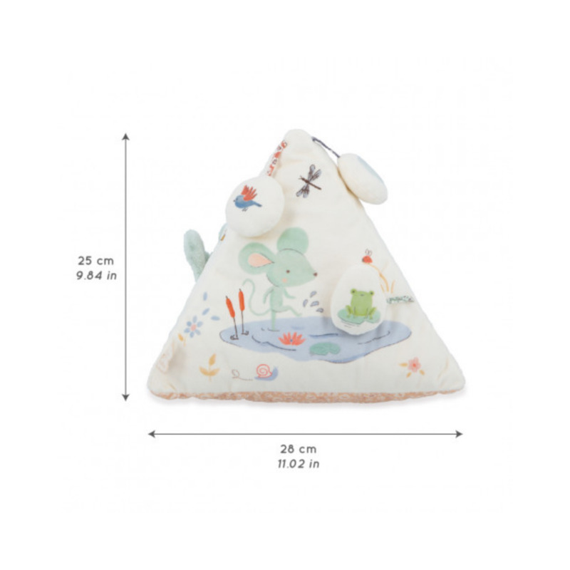 La pirámide de actividades Kaloo es un encantador juguete sensorial con sonido diseñado para estimular los sentidos del bebé y acompañar sus primeros descubrimientos. Con una altura de 25 cm, su textura suave de microterciopelo y sus delicados bordados invitan al tacto y a la exploración.