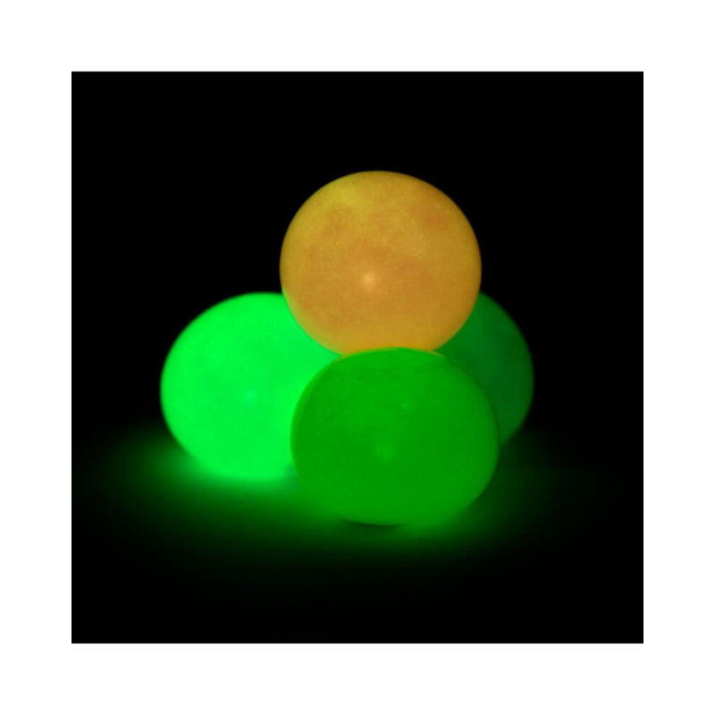 Juguete estrujable elástico – pelota antiestrés que brilla en la oscuridad de Puckator