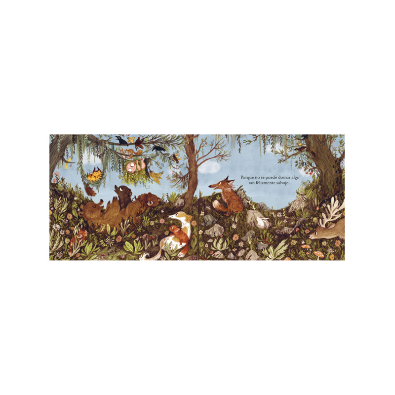 Salvaje es un álbum ilustrado que narra la historia de una niña que vive libre y feliz en la naturaleza, aprendiendo de los animales a ser audaz, valiente y auténtica. Cuando aparece un nuevo animal similar a ella, su mundo cambia y nos invita a reflexionar sobre lo que nos hace únicos.
