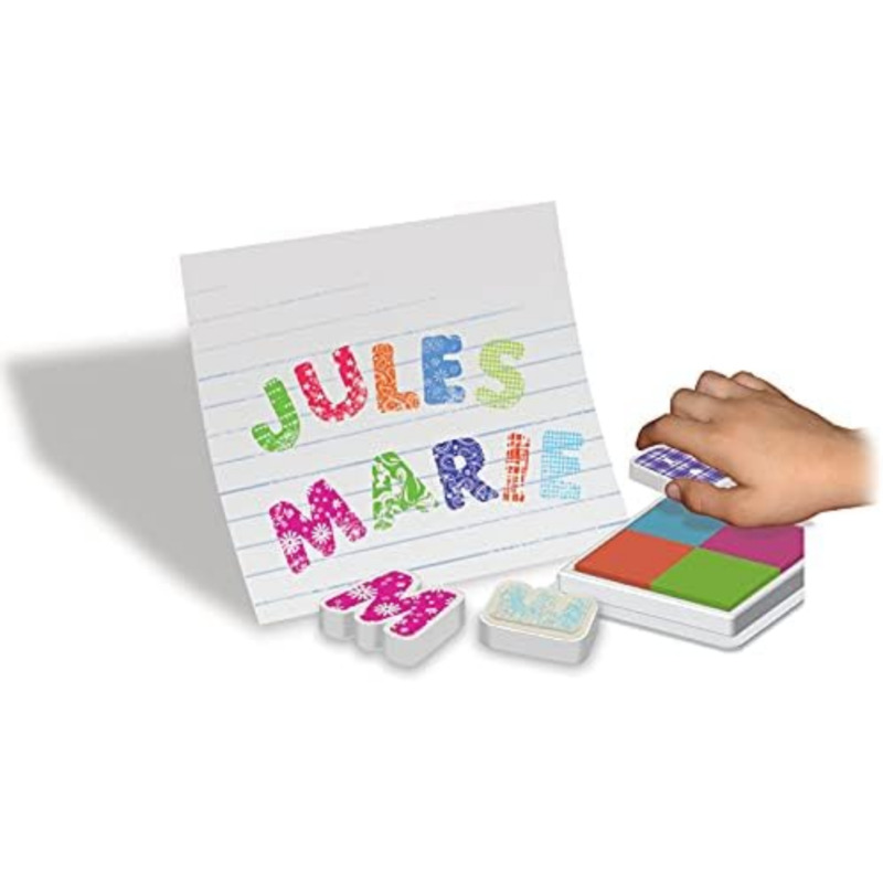 Set creativo pensado para niños a partir de 4 años, ideal para iniciarse en el juego con sellos de una forma sencilla y divertida. Gracias a sus piezas de gran tamaño, permite escribir palabras y nombres con facilidad, favoreciendo la creatividad, la motricidad fina y el reconocimiento de letras. Incluye una almohadilla con 4 colores y tinta lavable al agua, lo que lo convierte en una opción práctica y cómoda para actividades escolares y de manualidades.