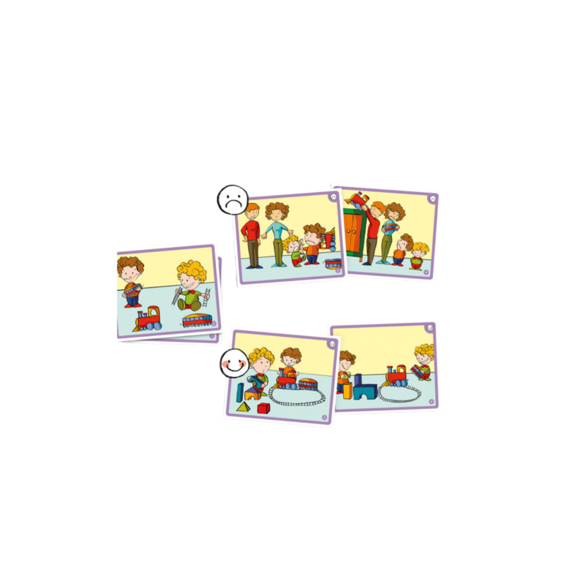 Esta serie de juegos presenta 7 sencillas historias en cada juego, mostrando dos formas distintas de resolver conflictos y las consecuencias de tomar decisiones correctas o incorrectas. Favorece el aprendizaje cooperativo y la educación en valores, desarrollando la empatía, las habilidades sociales y el respeto. Además, promueve la igualdad, la solidaridad y la inclusión, ayudando a los niños a comprender y gestionar situaciones sociales de manera constructiva.