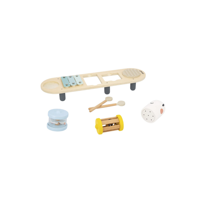 La oruga musical de madera FSC™ invita a los niños a explorar sonidos y ritmo de forma divertida. Cada parte del cuerpo es un instrumento diferente: maraca, xilófono, rascador y dos sonajeros extraíbles (uno con campanas y otro tipo palo de lluvia). Fabricada en madera certificada FSC™, es un juguete educativo perfecto para estimular la audición, la coordinación y la creatividad desde los 12 meses.