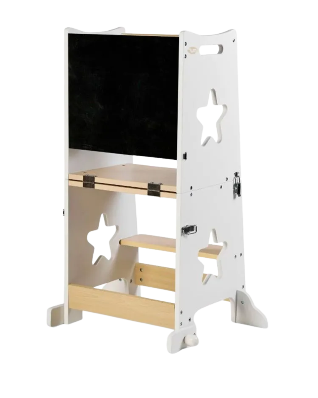 La torre de aprendizaje Learn Up está diseñada bajo el enfoque Montessori, fomentando la independencia y el desarrollo de habilidades en los más pequeños. Permite que los niños participen en actividades diarias como cocinar, lavarse las manos o los dientes, promoviendo su autonomía de forma segura. Su diseño 3 en 1 la convierte en una torre multifuncional que se transforma fácilmente en un escritorio con asiento e incluye una pizarra de tiza para dibujar o escribir. Fabricada con materiales resistentes, cuenta con barrera y soportes de seguridad antivuelco, bordes redondeados y un sistema de montaje sencillo. Recomendado a partir de 3 años, soporta hasta 50 kg y mide 45 x 42 x 59,5 cm.