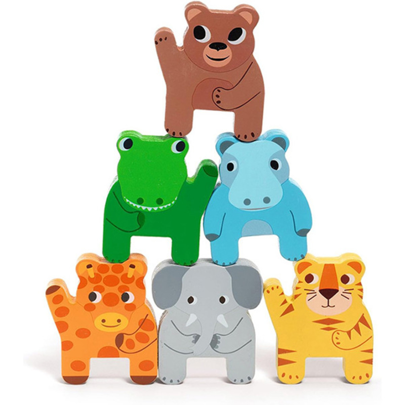 Descubre este tren de madera para niños con 11 animales exóticos apilables y 6 vagones. Perfecto para niños a partir de 18 meses, este juguete fomenta el desarrollo de habilidades motoras gruesas mientras reconocen colores y formas. Con una cuerda para arrastrarlo, combina diversión y aprendizaje. ¡Ideal para el desarrollo temprano!