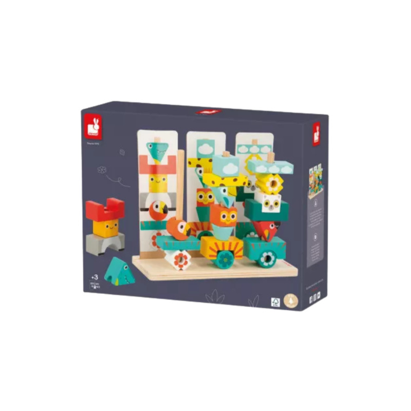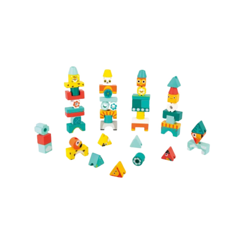 Juego de construcción de tótems de madera FSC ideal para potenciar la observación y la destreza manual en niños a partir de 3 años. Este juego educativo invita a apilar piezas de diferentes formas y tamaños para crear múltiples modelos de tótems siguiendo las fichas incluidas. Fabricado con materiales sostenibles y de alta calidad, ofrece una experiencia segura, creativa y divertida.