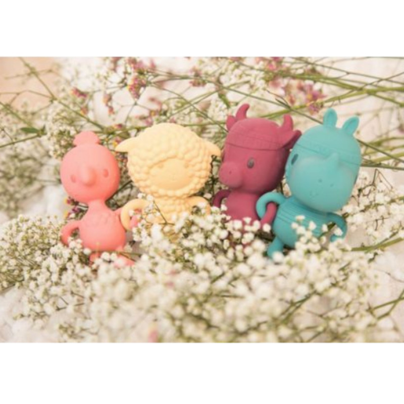Fabricado con caucho 100% natural y pigmentos vegetales, es seguro, sostenible y respetuoso con el medio ambiente. Su textura suave y diseño ergonómico hacen que sea fácil de agarrar por manos pequeñas, promoviendo el desarrollo temprano de la coordinación.